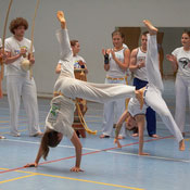 Hierbei wird Flexibilität, Konzentration, Rhythmusgefühl und Muskelkraft gleichermaßen trainiert. Beim Singen und Musizieren werden feurige Rhythmen entwickelt und der natürliche Bewegungsdrang wird kanalisiert, so dass auch "Zappelphilippe" endlich auf ihre Kosten kommen. Mit Drehtritten, eingesprungene Tritten und Akrobatik kämpfen je zwei Kontrahenten gegeneinander und werden von der Gruppe mittels Klatschen und Trommeln angeheizt.