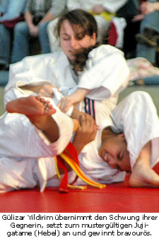 Für die größte Überraschung jedoch sorgte Gülizar Yildirim. Nach dem Sie eine eher schlechte Saison hinter sich und fast schon den Mut zum Kämpfen aufgegeben hatte, verwandelte Sie in Ihren Turnierbegegnungen technisch versiert sofort auch die kleinsten Fehler ihrer Rivalinnen zu ihrem Vorteil und gewann in ihrer Gewichtsklasse den 1. Platz.