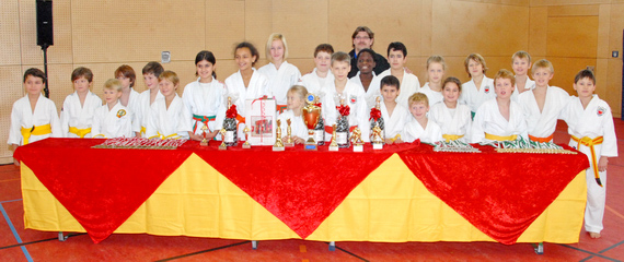 Noch einmal richtig spannend wurde es als es um die Wertung schnellster Sieg ging. Es knisterte förmlich die Luft in der Halle, als bekannt gegeben werden könnte, dass Amelie Kaiser vom TV Wehen in 9 Sekunden Kampfzeit schnellste der Mädchen war. Toppen konnte das nur noch Pascal Fischer von der TG Schwalbach in der Bewertung der Jungen - er schaffte es in nur 3 Sekunden einen seiner Mattenbegegnungen für sich zu entscheiden. Beide wurden mit den beliebten Trophäen "Schnellster Ippon 2011" ausgezeichnet.
