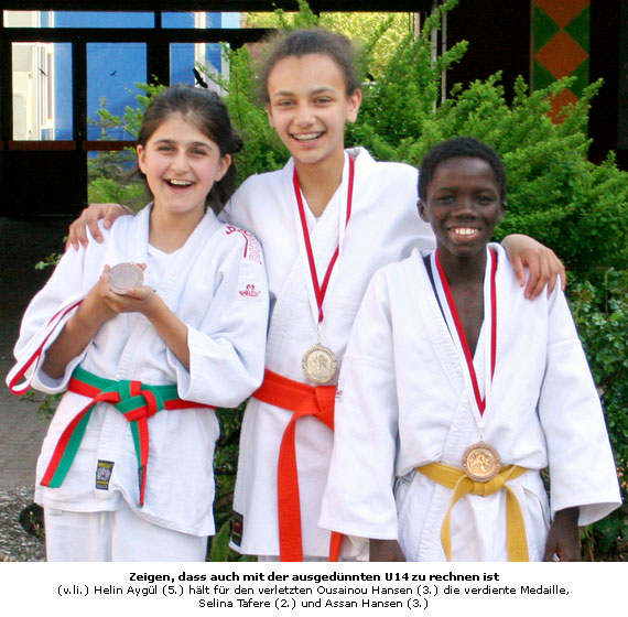 Wieder auf der Wettkampfmatte sind die Zwillinge Assan und Ousainou Hansen, die nach einer halbjährigen Trainingspause, die Judo-Matte rockten. Mit manch unkonventionellen Techniken und dem stetigen Drang ja nicht auf den Rücken zu fallen, riskierten sie – im wahrsten Sinne des Wortes - Kopf und Kragen und holten sich Bronze in der Gewichtsklasse bis 31 kg. Helin Aygül hingegen tat sich in der gut besetzten Gewichtsklasse bis 44 kg eher schwer, machte jedoch ihren Konkurrentinnen das Siegen nicht leicht und ergatterte einen tollen 5. Platz. Allen voran zauberte Selina Tafere ihre alte Form wieder aus dem Judo-Ärmel. Mit Biss, Intuition, Geistesgegenwärtigkeit und guter Analyse Ihrer Gegnerinnen verwandelte sie sich in eine wahre Kampfmaschine und konnte mit guter Technik vier Kämpfe in Folge für sich entscheiden. Einzig im Finale ging ihr die Luft aus. Selina freute sich dennoch über den 2. Platz, denn mit einem Vize-Bezirksmeistertitel hätte sie selber vor Wettkampfbeginn am wenigsten gerechnet. Bravo!