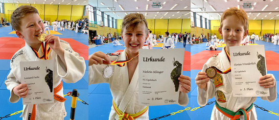 SGE-Newcomer Deniz Sen (-34) und Niclas Kösling (-40) verbuchten beide in der U12 die Teilnahme als Testwettkampf. Luis Rosenberger (-37/U15) und Ole Vogel (-66/U18) starteten erstmal in der höheren Altersklasse und erreichten den 8. Platz. In der U12 holten Florian Wunderlich (-37) Bronze, Melvin Klinger (-43) Silber und Lennard Fuchs (-46) Gold.