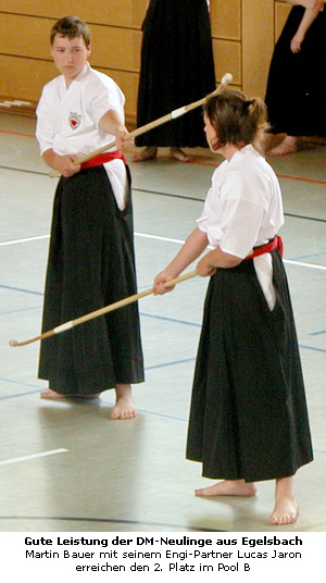 Kevin Schuhmacher, Lucas Jaron, jüngster Egelsbacher Naginata-Begeisterter, und Martin Bauer lieferten im Vergleich zur internationalen Konkurrenz eine auffallend gute Vorstellung, während ihrer Prüfungen, ab. Sie hatten erst im Dezember 2008 ihren 6. Kyu, bei der ersten in Deutschland stattfindenden Kyu-Prüfung in Mainz, erreicht und legten in Prag ebenfalls erfolgreich die Prüfung zum 5. Schülergrad ab.