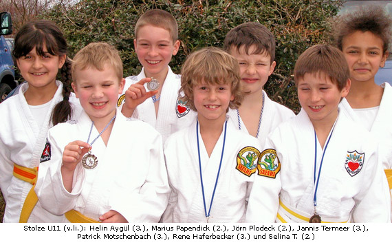 Auch bei dieser Gruppe waren zwei Neulinge auf der Wettkampfmatte dabei Rene Haferbecker (Gr.13), der nur ganz knapp unterlag, holte sich Bronze und Jörn Plodeck (Gr.24), der gleich zwei seiner Kämpfe mit Ippon beendete und verdient Silber mit nach Hause brachte. Jannis Termeer (Gr.2) hatte großes Pech. Er verletzte sich bei seinem vorletzten Kampf, zollte jedoch seinem letzten Gegner Respekt und erhielt für seine Leistung sogar noch den 3. Platz auf dem Treppchen. Mit einem Ippon und mehreren guten Unterbewertungen wurde Patrick Motschenbach Drittplatzierter der Wettkampfgruppe 23. Marius Papendick (Gr.12) nahm das Turnier als reinen Übungskampf und auch er probierte alle gelernten Techniken durch. Links-Rechts, Hüfte-Schulter, Feger – alles was das Repertoire aufbot setzte er an und gewann schlussendlich mit mehreren Wazari und einem schnellen Ippon Silber. Die Mädchen hatten den Dreh schneller raus, wie man im Zeiskam gewinnen kann. So holte sich Helin Aygül (Gr.12) mit gutem Stehvermögen Bronze. Selina T. (Gr.7), die bisher nur auf vereinseigenem Terrain gekämpft hatte, setzte sich mit Biss und starker Kondition durch und strahlte am Ende über einen tollen 2. Platz.