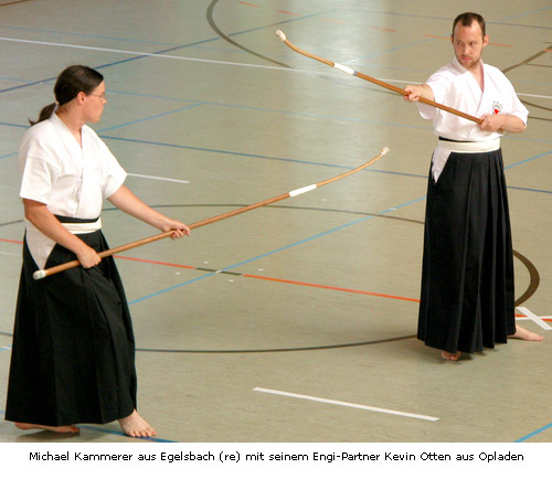 In den paarweise vorgetragenen Kataformen zwei und vier errang das Team des Leverkusener Trainingsleiters Andreas Nicol (2. Dan) mit sein Partner Marc Littlewood (1. Dan) den Meistertitel für Ihre Engi-Vorführung. Die Vertreter des Dojo in Mainz Eva Gervers und Ines Klose errangen den zweiten Platz. Deutscher Meister im Einzelwettkampf wurde nach spannenden Begegnungen Andreas Nicol.