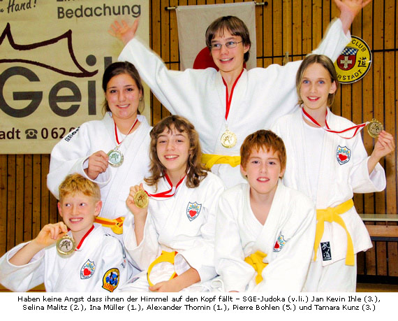 Bereits im zweiten Jahr in Folge ist die Sportgemeinschaft Egelsbach auf Bezirksebene vertreten, was alle Beteiligten nicht einem geheimen Zaubertrank, sondern ihrem Trainer Jürgen Krist zu schreiben. Der nämlich fördert und fordert seine jungen Schützlinge zu Höchstleistungen heraus. So konnte Pierre Bohlen, sichtlich unzufrieden mit dem Ausgang des Wettstreits, in seiner stark besetzten Gewichtsklasse den fünften Platz für sich verbuchen. Tamara Kunz und Jan Kevin Ihle gelang auf Anhieb der Sprung aufs Ehrentreppchen, so dass sie in ihren Wettkampfgruppen den dritten Rang einnahmen. Selina Malitz wurde Vizebezirksmeisterin der gewichtigsten Klasse. Die Alt-Meisterin war weniger glücklich darüber, dass sie Ihren Titel nicht halten konnte. Die frühere Vizemeisterin Ina Müller konnte Ihren Bezirksrang toppen und erkämpfte sich den Titel Bezirksmeisterin 2008. Weniger keck und listig dafür ebenso erfolgreich ging es für Alexander Thomin aus. Er zeigte welche unheimlichen Kräfte in ihm stecken - ob wohl er nicht in den Trank des Miraculix als Kleinkind gefallen war - und brachte glänzendes Gold mit in sein Heimatdorf.
