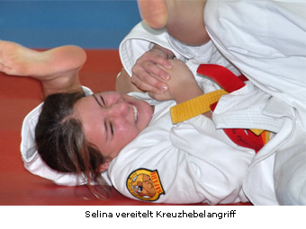 Nicht ganz so negativ sah ihre Abteilungsleiterin die Kampfbegegnungen: "Selina vertrat die SGE in Bürstadt gebührend. Sie war zwar heute etwas unkonzentrierter als sonst, setzt jedoch immer vielfältigere Techniken ein. Ein großes Plus ist ihre Top-Kondition und ihr schier unversiegbarer Kampfgeist, damit macht Selina ihren Gegenrinnen das Leben ganz schön zur Hölle!"