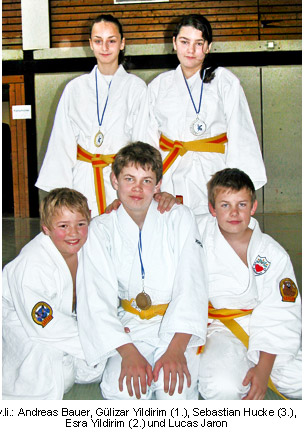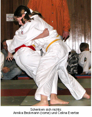 In der Einzelwertung konnte sich Julian Santos Abad einen technisch geschickt verdienten dritten Platz sichern. Sein kleiner Bruder Samuel glänzte durch einen Ippon-Sieg und erhielt ebenfalls eine Urkunden für den dritten Platz. Der neuen Wettkampfsituation anfangs eher skeptisch gegenüber stehend überwand Celina Evertse ihre Scheu und erreichte den zweiten Platz in ihrer Gewichtsklasse. Bravourös glänzten Lisa Meißner, Annika Beckmann, Vanessa Trackl, Selina Malitz und René Bernst in ihren Kämpfen. Als wären sie bereits „alte Hasen“ bezwangen Sie ihre Gegner und gingen aus ihren Wettkampfrunden ungeschlagen hervor. Alle fünf erreichten einen tollen 1. Platz.