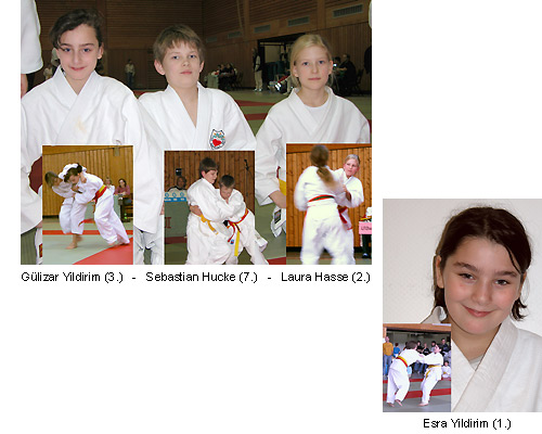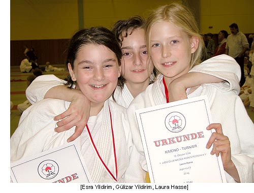 Hier konnte Esra Yildirim in ihrer Altersgruppe durch einen bravourösen Ippon die Silbermedaille ergattern. Laura Hasse, die nach gerade erst bestandener 7. Kyu Prüfung (Gelbgurt), ihren ersten Turnierkampf mutig antrat, wurde mit einer Bronzemedaille belohnt. Die Dritte im Bunde Gülizar Yildirim, musste sich gleich einem ganzen Heer von starken Gegnerinnen stellen. Sie erreichte mittels guter technischer Umsetzung einen zufriedenstellenden 5. Platz.