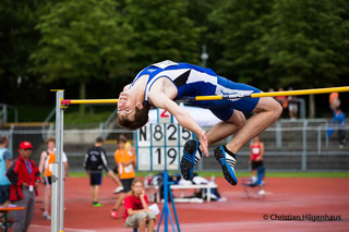 Lediglich 15 Minuten später war Michael Werner an der Reihe. Seit Wochen hat er starke Schmerzen in der Ferse. Dennoch biss er sich durch die vergangenen Trainingswochen und wollte in einem starken Teilnehmerfeld eine gute Leistung zeigen. Trotz seines Handicaps sprang Michael die Anfangshöhe von 1,90m ohne Probleme. Auch die ersten zwei Versuche über 1,95m hatte er ganz locker drin, riss sie jedoch leider aber trotzdem. Anspannung machte sich vor dem letzten Sprung bei Fans und Betreuern breit. - Schafft er es, dann hätte Michael über die Höhe von 2 Metern wieder 3 Versuche. Der Egelsbacher Hochspringer nahm Anlauf, sprang und riss die Latte leider wieder durch einen minimalen Kontakt. Am Ende blieben so die 1,90m stehen, was dem amtierenden Süd- deutschen Meister in der Juni- orenklasse einen tollen 4. Platz bescherte.