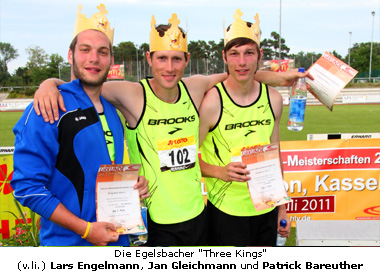 – Jan Gleichmann knackt VereinsrekordeBei guten äußeren Bedin- gungen fanden am Wochen- ende 2./3. Juli 2011 in Viernheim die diesjährigen Hessischen Leichtathletik Mehrkampf Meisterschaften statt. Seit einigen Monaten und nach mehrjähriger Wettkampfpause bereiteten sich drei Egelsbacher Athle- ten auf diese Meisterschaft vor. Jan Gleichmann einer der besten deutschen Hür- denläufer vergangener Jah- re und die Sprinter Patrick Bareuther und Lars Engelmann stellten sich dieser großen Herausforderung auf Landesebene.