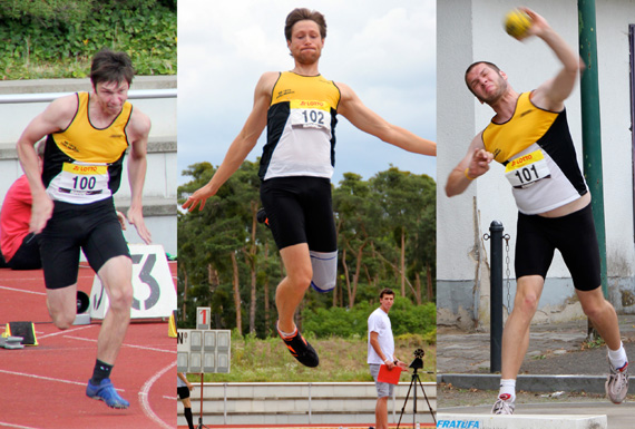 Gleich in der ersten Disziplin dem 100m-Lauf setzen die Athleten der SG Egelsbach einen Paukenschlag, indem sie die Konkurrenz mit guten Sprintzeiten beherrschten. Jan lief hervorragende 11,18s, Patrick 11,88s und Lars schafften noch gute 12,03s. In den weiteren Disziplinen am ersten Tag dem Weitsprung, dem Kugelstoß und dem Hochsprung konnten die Egelsbacher Athleten Ihre guten Positionen im Teilnehmerfeld behaupten. Zum Abschluss des ersten Tages mussten Alle beim 400m-Lauf noch einmal die Kräfte mobilisieren um sich eine gute Ausgangsposition für den 2. Tag zu sichern.