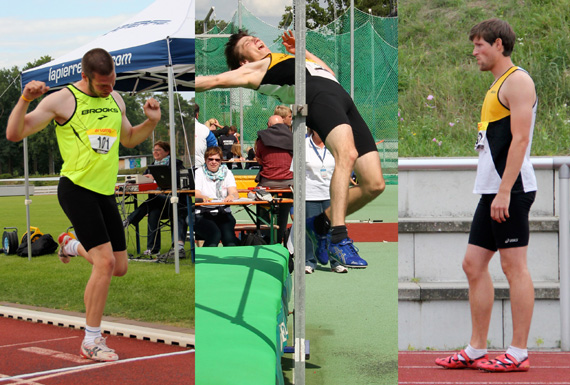 Am Sonntagmorgen dann waren Alle gespannt wie die Egelsbacher die nun folgenden technischen Disziplinen den 110m-Hürdenlauf, das Diskuswerfen und insbesondere den Stabhochsprung werden meistern können. Im Hürdenlauf zeigte Jan seine Klasse vergangener Jahre und war Schnellster mit national respektablen 15,02s. Das Diskuswerfen stellte sich als die schwächste Disziplin heraus, konnten die Egelsbacher in den letzten Wochen hier nur eingeschränkt trainieren. Nachdem der erste Schreck verdaut war, ging es zur Angstdisziplin Stabhochsprung. Hier waren Patrick und Lars mit Ihren Leistungen von 2,50m bzw. 2,40m zufrieden, hat man doch erst vor wenigen Wochen mit dem Training für diese anspruchsvolle Disziplin begonnen. Mit einer waghalsigen, unnachahmbaren Technik und viel Mut steigerte Jan Gleichmann sogar den Vereinsrekord in dieser Disziplin auf tolle 3,90m. Mit soliden Speerwurf Ergebnissen aller Drei, um die 40m stand dann die letzte Disziplin der 1500m-Lauf auf dem Programm. Hier mussten die Egelsbacher den Anstrengungen der vorangegangen 9 Disziplinen Tribut zollen und waren froh den zweiten Zehnkampf Ihrer Karriere so gut und vor Allem verletzungsfrei abschließen zu können.