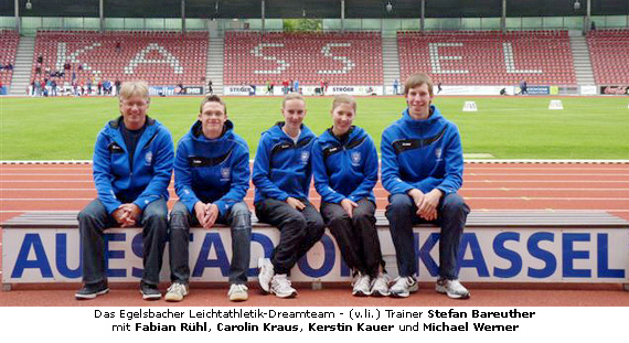 Am ersten Tag traten die Egels- bacher Viertelmeiler Carolin Kraus, Kerstin Kauer und Fabian Rühl über 400m an und erreichten mit tollen Bestleis- tungen vordere Plazierungen.