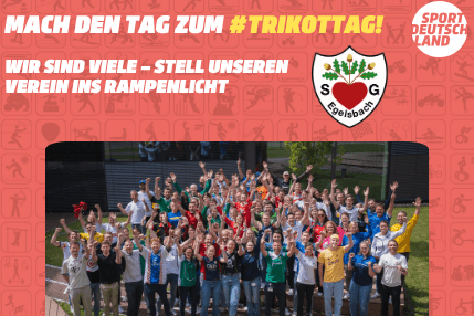 Tragt am 13. Mai euer Trikot oder Sportoutfit der SGE auch im Alltag. Postet dazu ein Foto auf Instagram oder Facebook und markiert uns @sgegelsbach1874ev. Nutzt zusätzlich den Hashtag #Trikottag, um zu zeigen, dass unser Verein verbindet, fit macht und unsere Gemeinschaft stärkt!